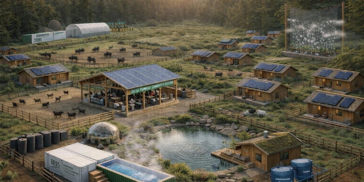 Project 168 is a fully integrated, infrastructure-first community model designed to unlock economic independence and restore human dignity at scale. Anchored by renewable mini-grid energy, each site integrates carbon-conscious housing, clean water systems, regenerative agriculture, vertical farms, and food-drying and processing facilities that reduce waste and generate export revenue. Solar-powered community kitchens replace biomass cooking, while upgraded healthcare facilities operate reliably through stable power and digital systems. Electric motorbikes enable clean last-mile logistics; mobile phone masts and edge data centres provide digital connectivity and future AI capability. Skills training and enterprise incubation empower women and youth to lead local businesses across agriculture, manufacturing, and services. Circular waste systems close the economic loop. Community hot spa bathing facilities and safe, powered shower blocks improve hygiene, health, and social wellbeing. With secure land and committed local partnership, Project 168 delivers energy, housing, food, mobility, connectivity, enterprise, and wellness as one coordinated, replicable platform for measurable, self-sustaining transformation